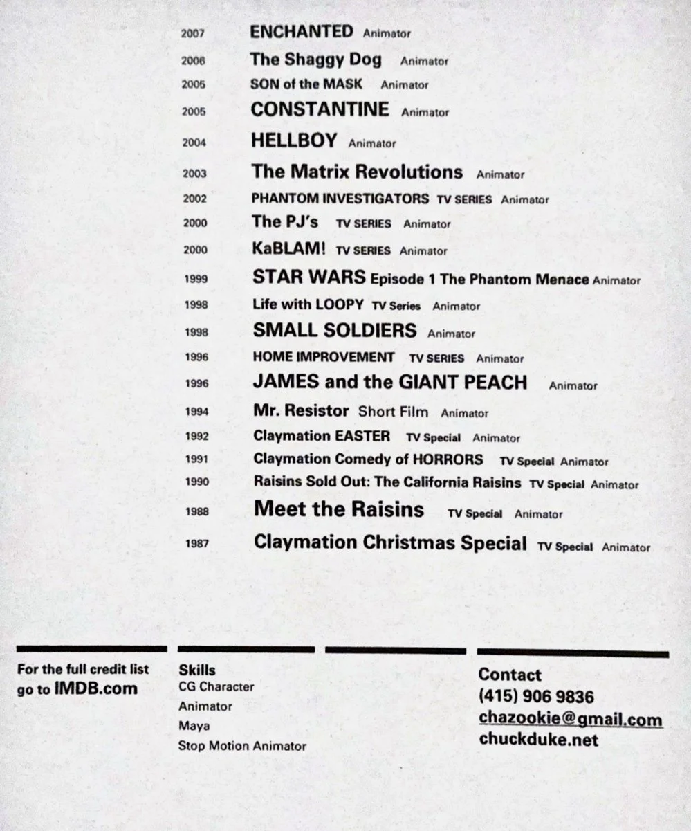 For many years, trapped behind black curtains, I have jotted down my mental state while animating stop motion puppets. I put together some of those thoughts into a little poetic essay on the matter. The book is available on AMAZON.com Search this whole title “Moving Hold, by Chuck Duke” If you don’t include my name, you will get a bunch of websites for Moving and Packing supplies.